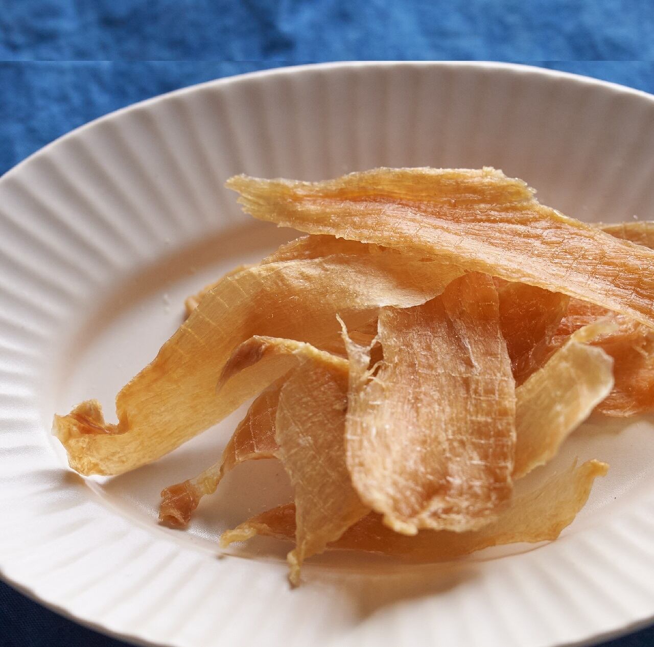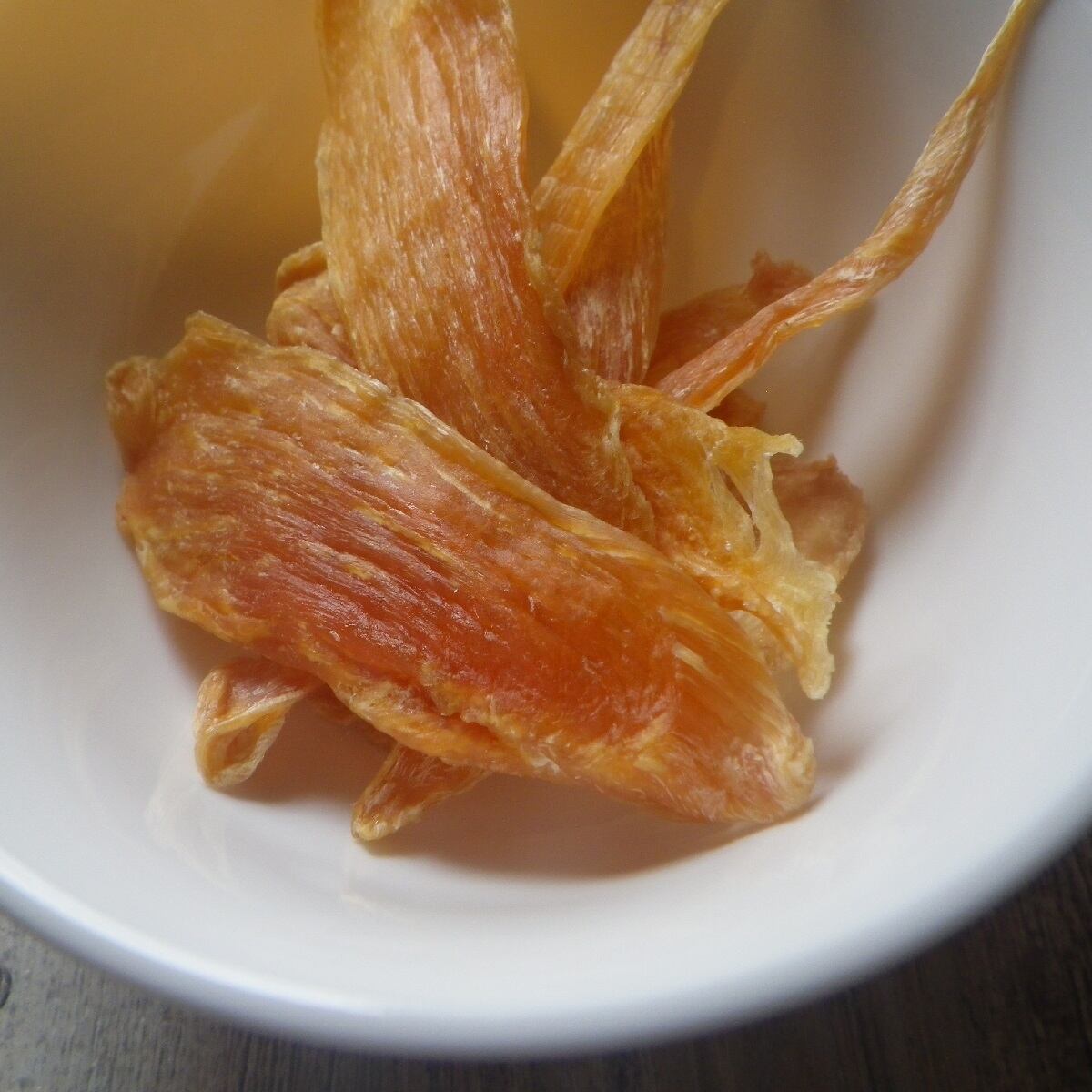 通常の鶏むねジャーキーよりさらに薄くスライスさせました。小型犬やシニアのワンちゃんでも食べやすくなっています。